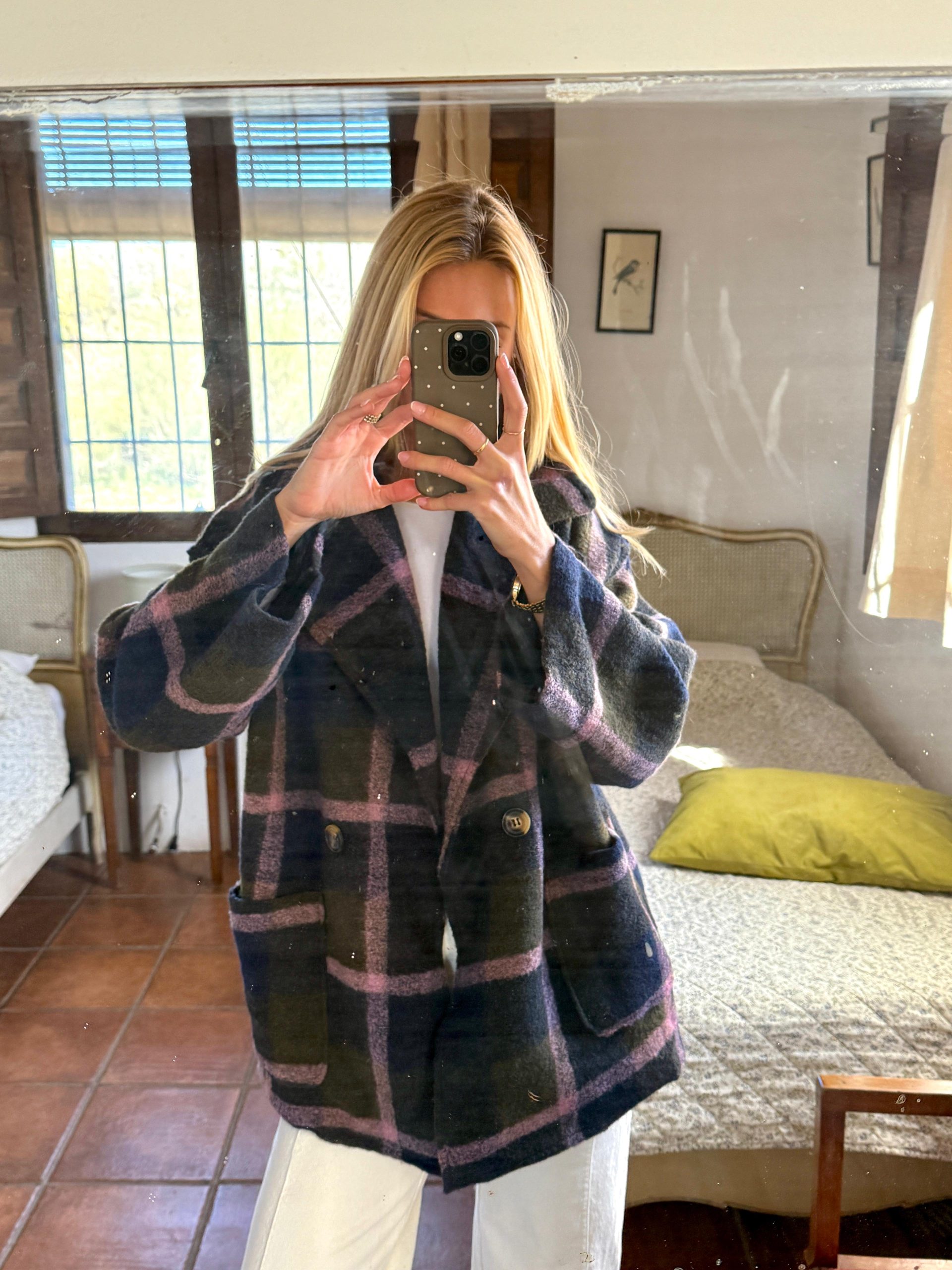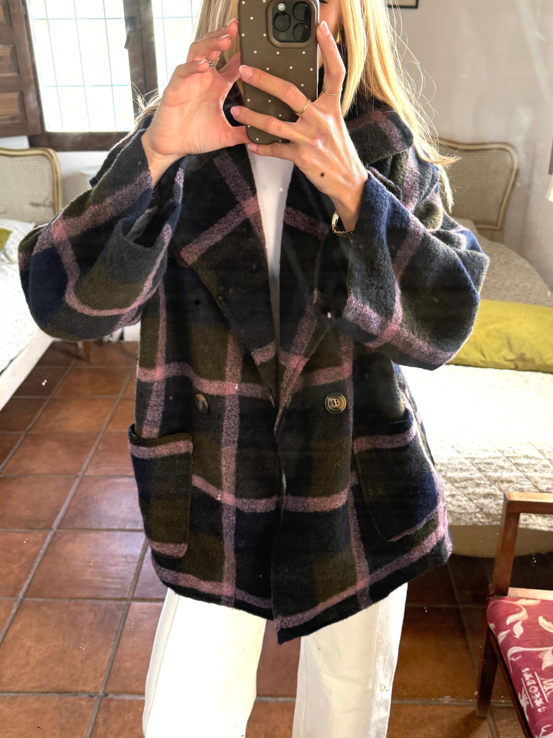 Abrigo con textura suave y parte central abierta.