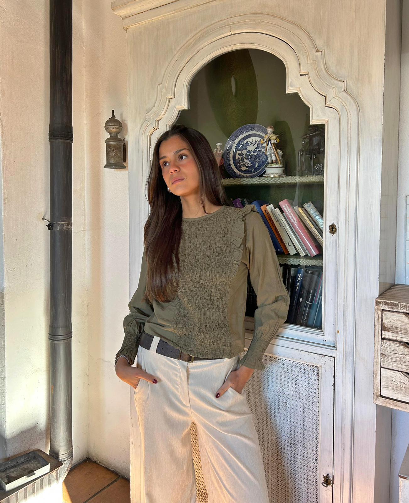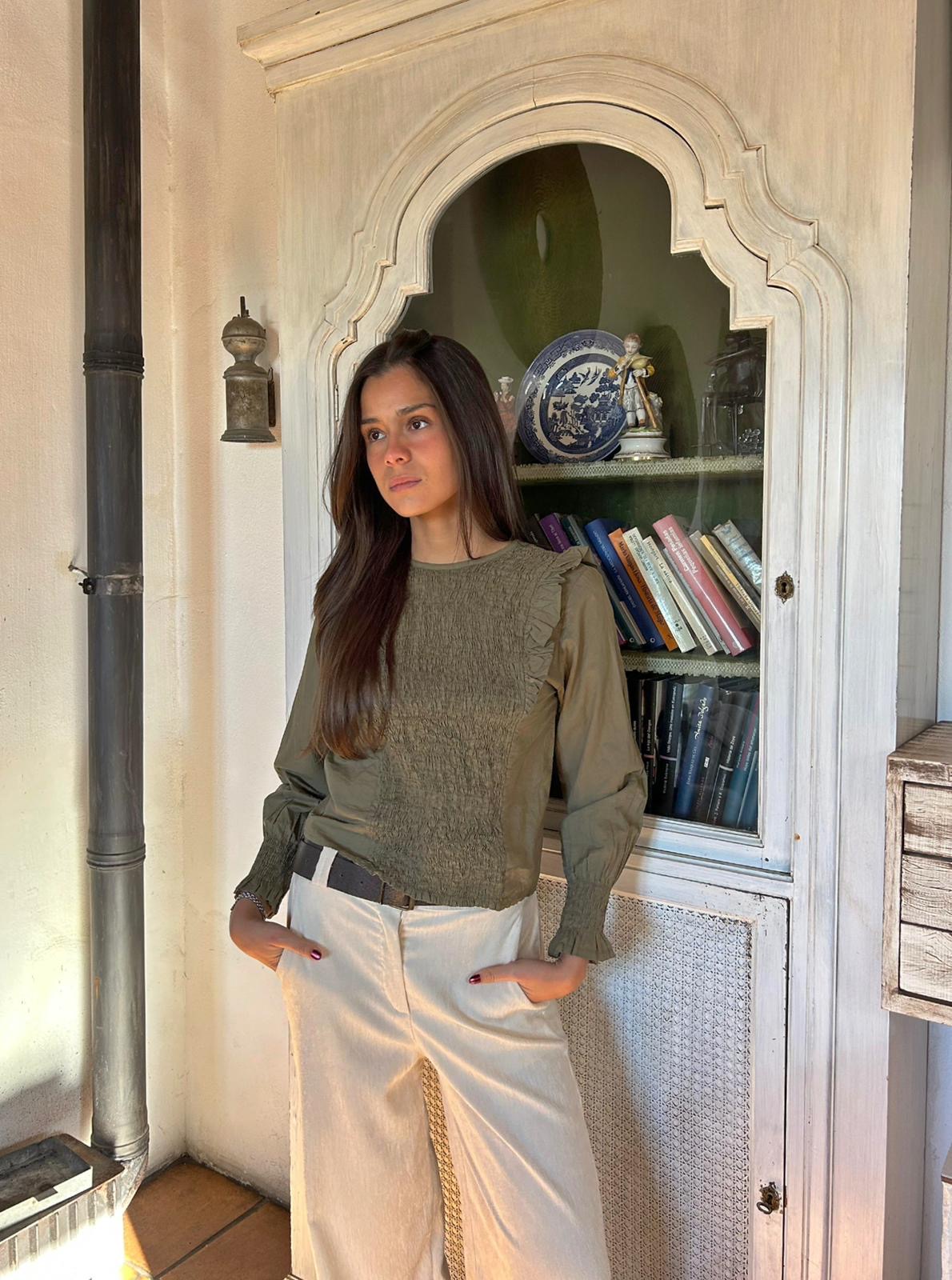 Camisa con fruncido frontal y resto verde liso